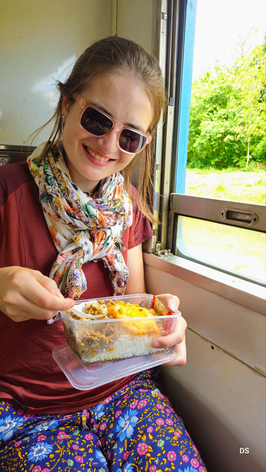 We are offered with tickets either for the new, AC-equipped, fast train, either for the slow, old-school train. This trip ends up being the cheapest and slowest train ride of our lives: 3.50 euros for two people, for 8 hours of train. Speed monitored: 50 kms/h, at its utmost. That’s alright, it is easy to keep ourselves busy: with the train windows wide open, we enjoy the beautiful landscapes that unveal themselves along the rails. Food vendors roam the train every 5 minutes, advertising everything from cold drinks to snacks, fruits and full meals. We had to try them, obviously – 10/10 for a meal costing 1 euro, delivered to you warm.