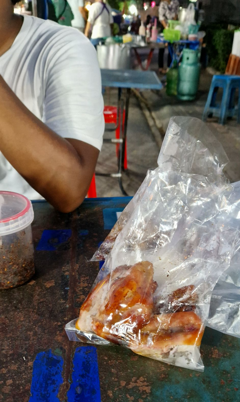 Dimitri has selected our hotel based on comments advertising a delicious food market facing the building. A.k.a. the best criterion to choose a place. For an insane low price (1.50 euro per head), here we are, gorging on fried chicken, noodle plates, with fresh cut fruits for dessert. Communication is done with hands and smiles; numbers partly in English, partly with fingers. Roasted insects are offered, but we pass for this time. We enjoy the warm nights, sitting on plastic stools, eating from plastic bags on rusty tables. Based on our experience in South-East Asia, the shabbier the sitting setting, the better the food. We are astonished later on to see that the snacks we buy at 7-Eleven cost more than a plate of fresh food from these stalls…
