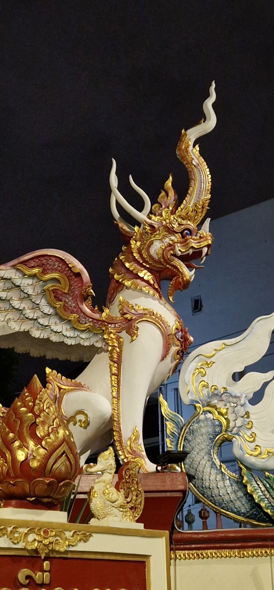 Later in the evening, we unknowingly crash into the Buddhist equivalent of a mass, where we try to blend in as much as we can. An elegant Thai lady, in her seventies, comes to us – snoop, did we do anything wrong? No no – she smiles at us, thumbs up and comments “Very good, very good!”. A guard even takes a picture of us. 10 minutes after the ceremony has begun, a group of tourists arrives, stays for a bit and leaves – I take it that ours was not that much of a rare experience! Still, we are carried away by the gold temple and orange monks singing in front of the Buddha.